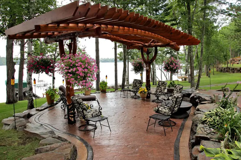 The Enderle’s life in the cabin is centered around sheltering the beautiful nature that is right around them. Expanding the outdoor space has enabled them to add side-by-side patios where they spend most of the warm season. One of the patios has a pergola that is supported by two trees with matching curves, that is a peculiarly shaped caused by a porcupine chewing the tops off the pine trees when they were young. This is just another example of how Matt is able to find the beauty in the imperfections and then incorporate them into his designs.