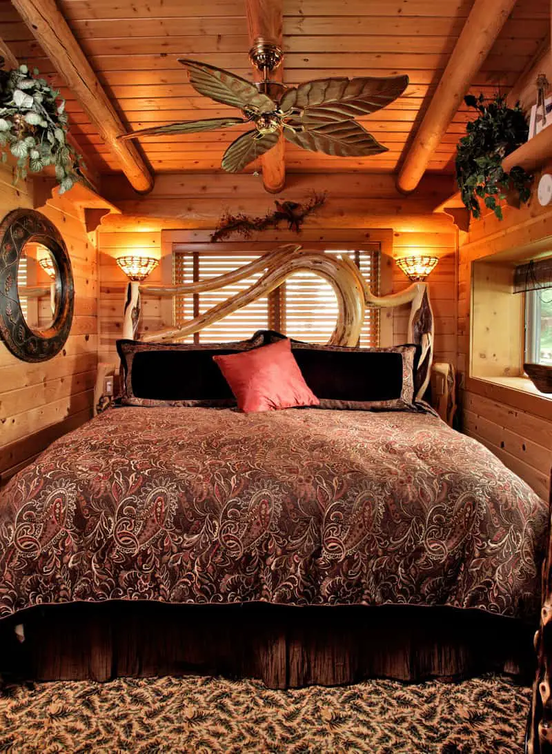 Matt’s craftsmanship is indeed showcased in every room of the cabin, which is just as fantastic on the inside as on the outside. The entertainment stand is a product of a hollowed-out cedar tree, while numerous wood types like the king-size headboard and bed frame are crafted, and the bedroom instantly becomes the spectacular and original focal point with this combination of wood pieces.