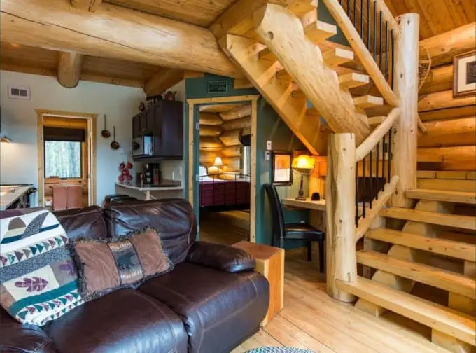 In comparison to the other, Midnight Sun Cabin will be more suitable for couples or single travelers as it offers a smaller space and a more intimate environment. This lovely log becomes the solace of two with a spacious and cozy queen bed where you can rest for 463 square feet. The cabin is perfectly fitted for a romantic getaway or a serene solo trip into the depths of the Yukon.
